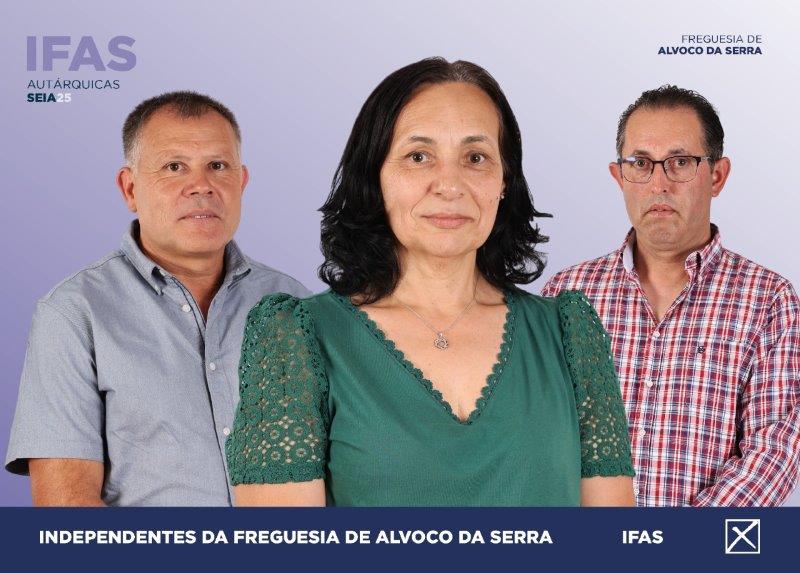 A candidatura “Independentes da Freguesia de Alvoco da Serra (IFAS)” apresenta-se às eleições autárquicas de 2025 com um projeto assente na proximidade, competência e compromisso com todas as aldeias da Freguesia – Alvoco da Serra, Outeiro da Vinha, Vasco Esteves de Baixo, Aguincho e Vasco Esteves de Cima. Com uma equipa composta por pessoas reconhecidas pela sua dedicação e ligação à comunidade, assumimos o objetivo de promover um desenvolvimento equilibrado, sustentado na valorização do território, na melhoria das condições de vida e na participação ativa dos cidadãos.
