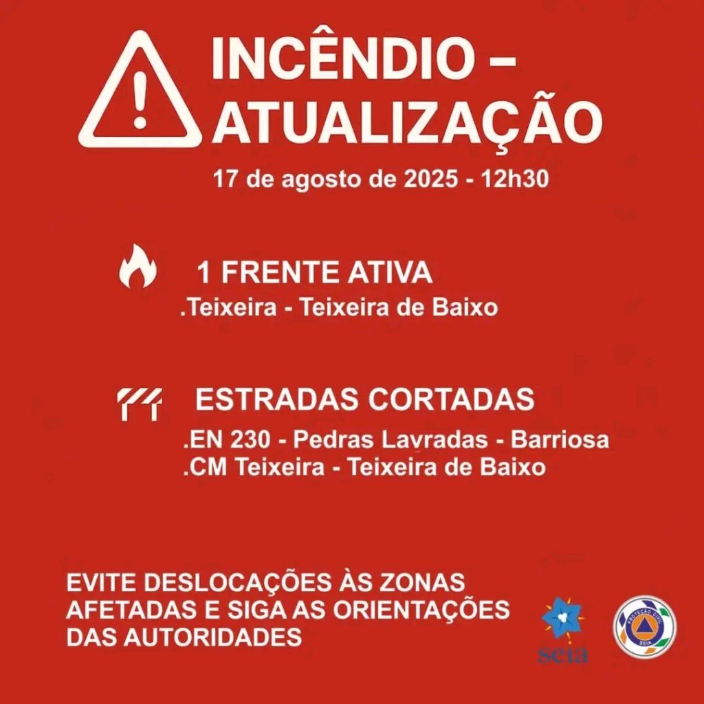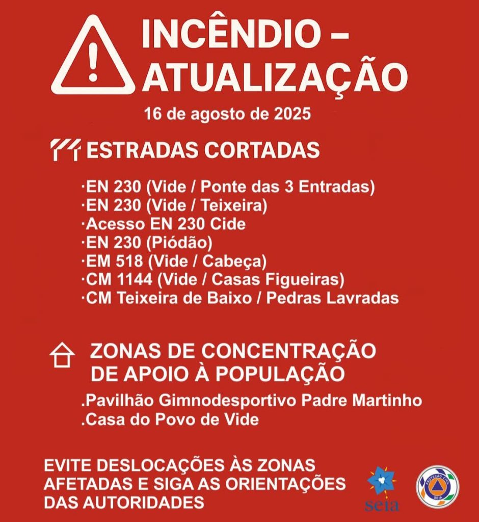 Reforça-se o apelo à população para evitar deslocações para as zonas afetadas, permitindo a atuação das equipas de combate ao incêndio e garantindo a segurança de todos.”