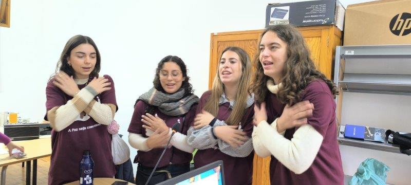 Um dos momentos altos da emissão foi marcado pelas vozes dos jovens da Missão País, que entoaram o hino do projeto nos microfones da rádio do Agrupamento.