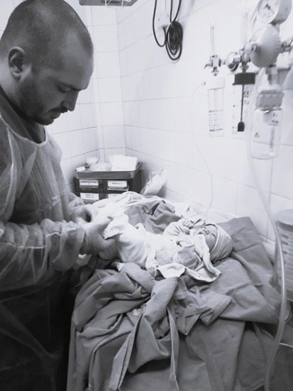 O momento do parto, tradicionalmente centrado na figura materna, tem vindo a integrar cada vez mais o pai. No Bloco de Partos e Bloco Operatório do Serviço de Obstetrícia A da Unidade Local de Saúde de Coimbra, a presença do pai é incentivada, permitindo-lhe participar em momentos significativos como o corte do cordão umbilical e os primeiros cuidados ao recém-nascido, participação no contato pele com pele, entre outras. Estas experiências significativas fortalecem o vínculo emocional e afirmam a paternidade de forma marcante.